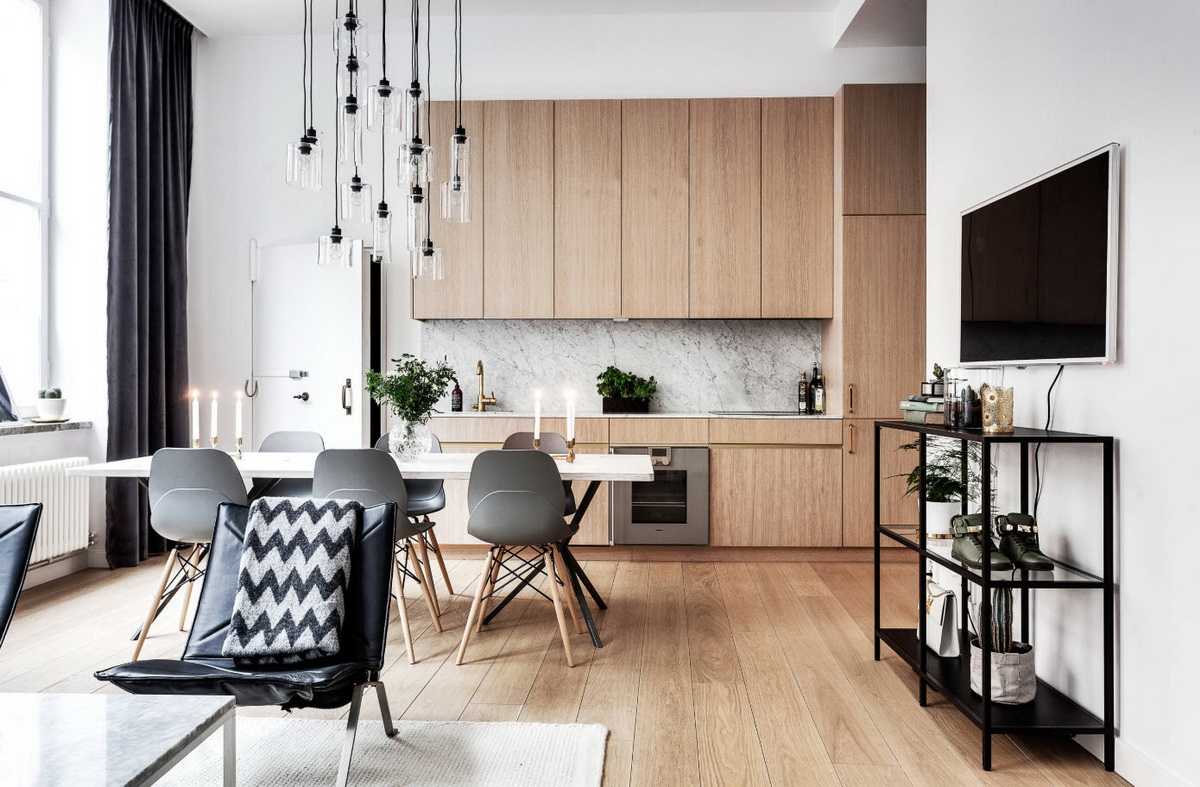 - Минимализм и модерн хорошо дополняют простые стильные изделия из дерева без лишних деталей. Также сюда гармонично впишется пластик.