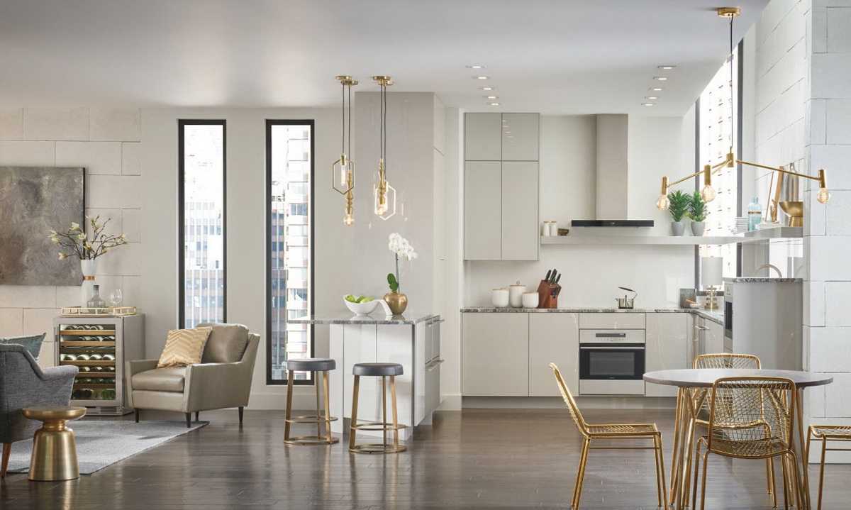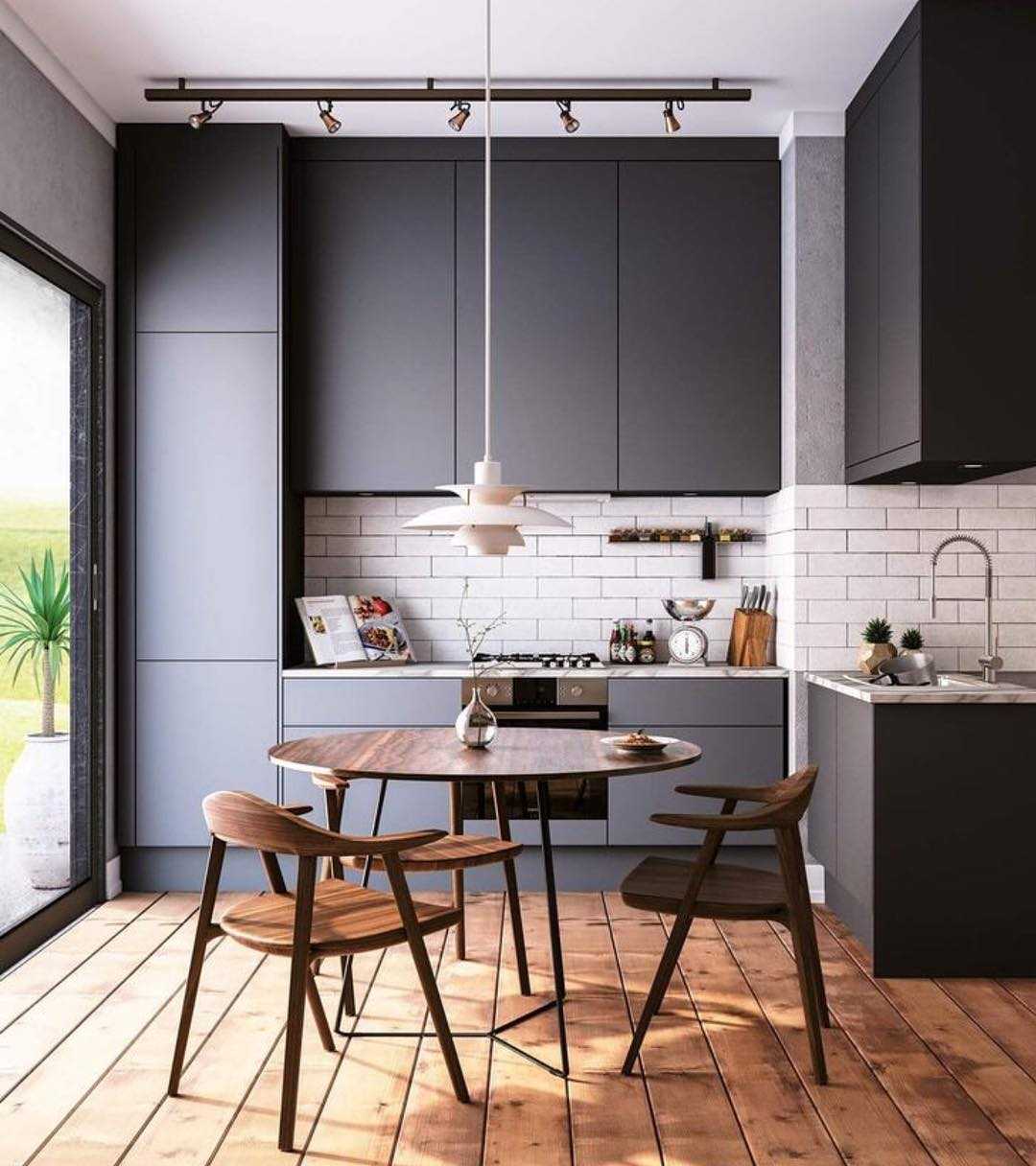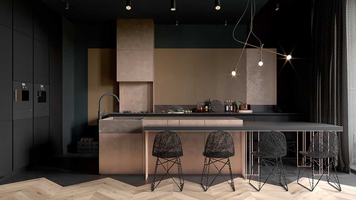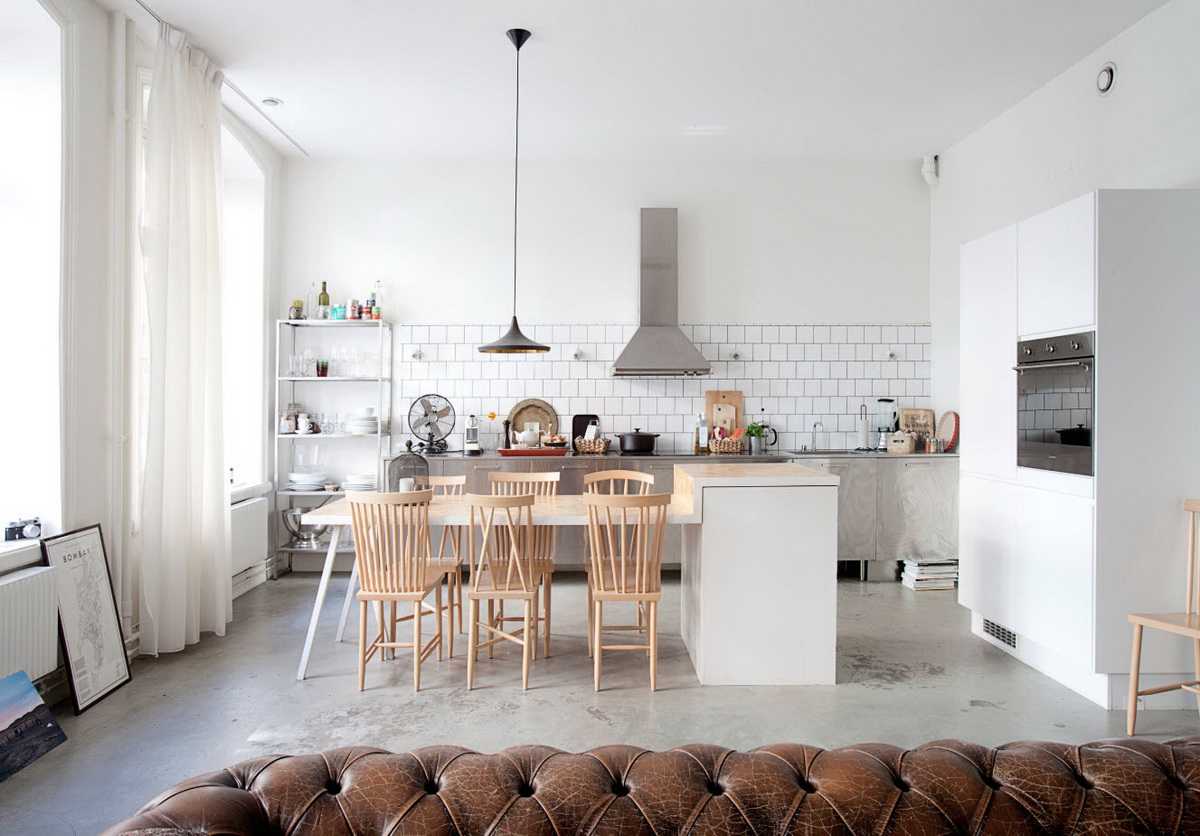 В сочетании со стульями из пластика или хромированной стали такая мебель станет основой кухни в стиле хай-тек, лофт или минимализм.