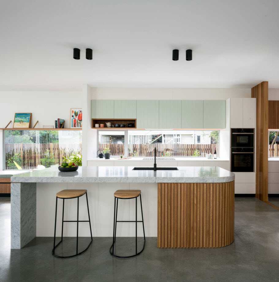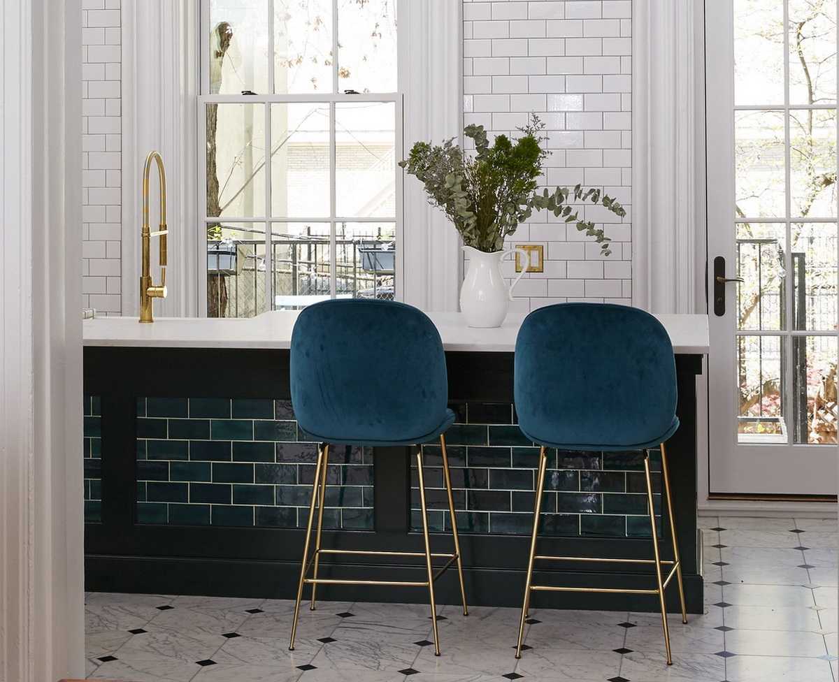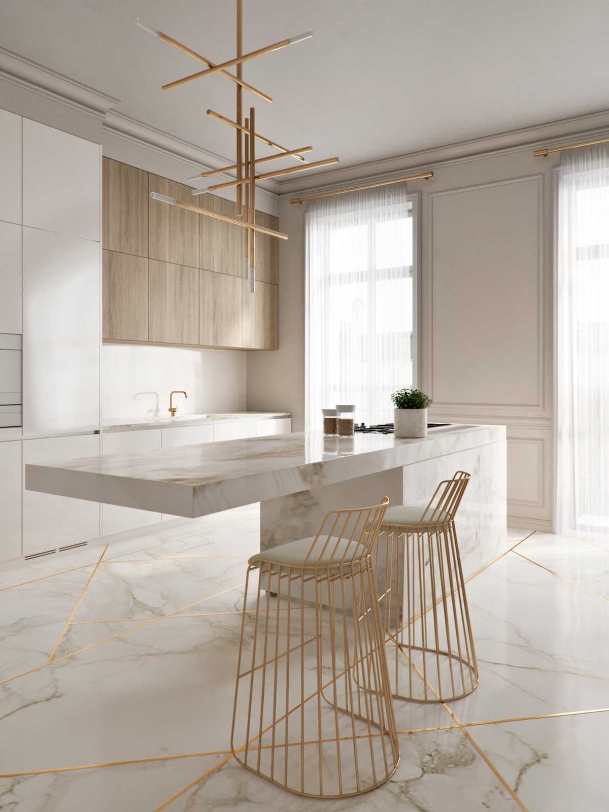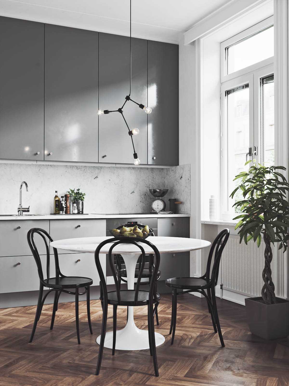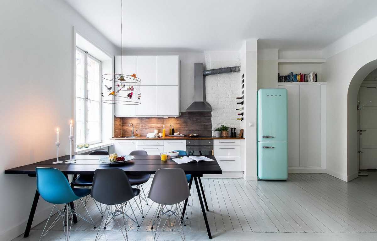Если стол и гарнитур уже сами по себе эффектны, не стоит перегружать кухню еще одним ярким акцентом в виде стула. Откажитесь от необычности в цвете / форме в пользу нейтральности.