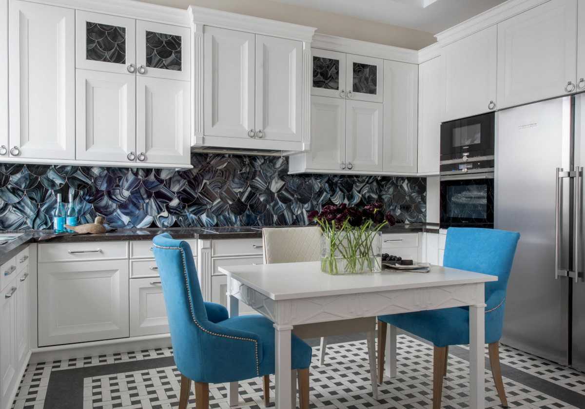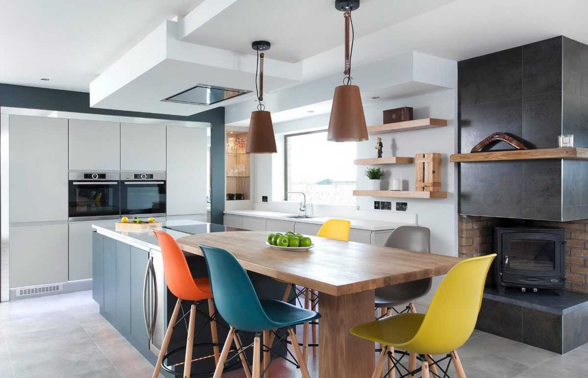 - если кухня нединамичная, то вдохнуть в нее жизнь поможет мебель с разноцветными сиденьями / спинками;