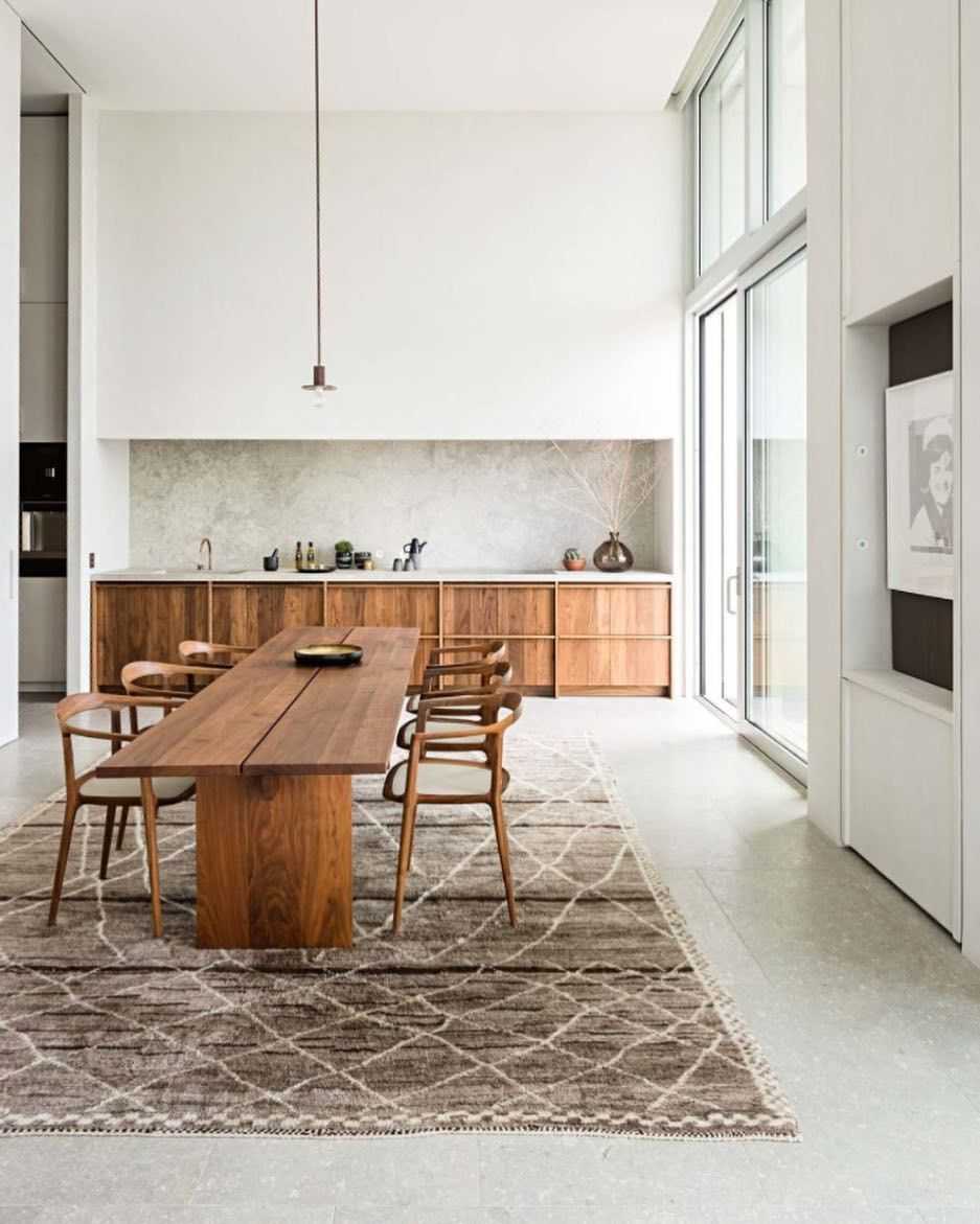 - Древесины. Это самый традиционный и универсальный вариант, он особенно актуален, если в интерьере кухни уже используются деревянные элементы – мебельные фасады или настенные панели. Обеденная группа из массива гармонирует с кухней любого стиля.