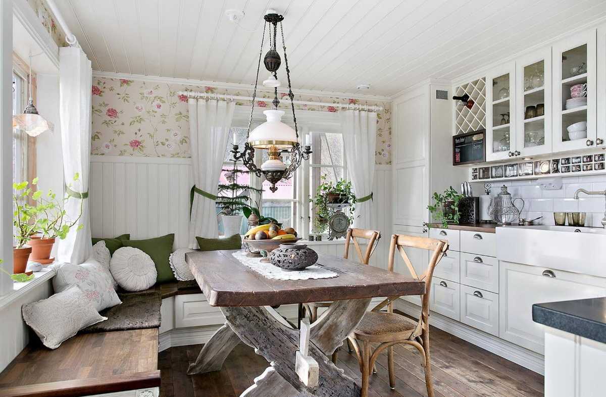 - При оформлении помещения в стиле прованс или кантри стоит подобрать объекты из дерева, возможно использование цветных или искусственно состаренных образцов. Для кантри интересным решением будет использование ротанга.