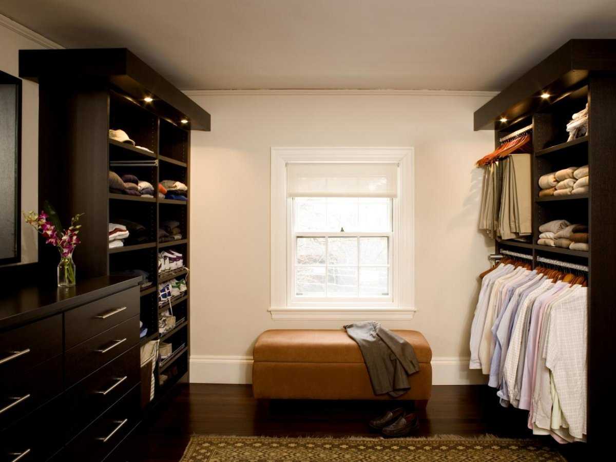 Желательно, чтобы в гардеробной комнате было окно. Если оно будет по центру