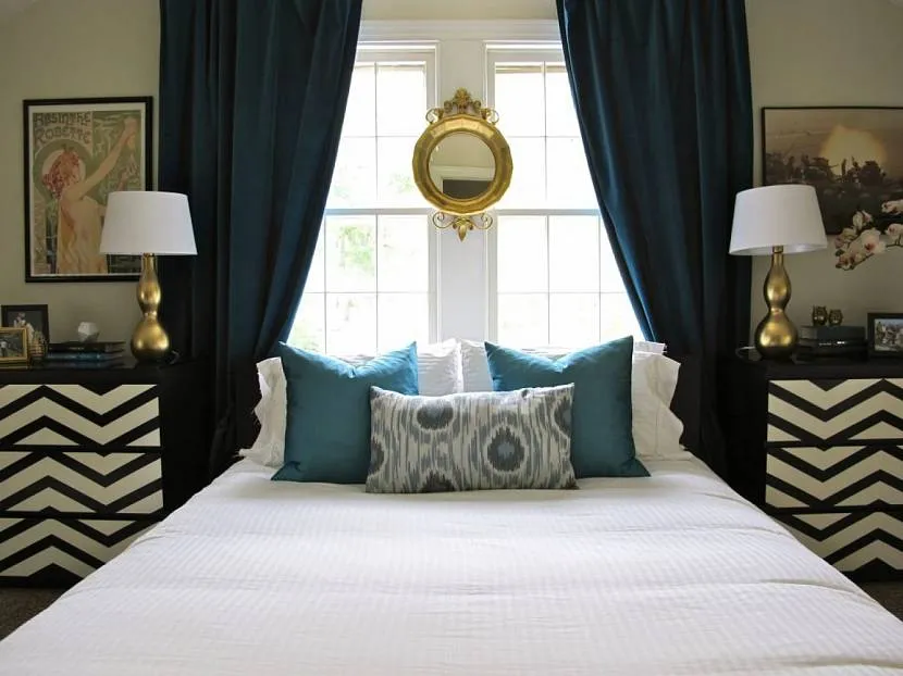 Оконные шторы могут стать одновременно стильным дополнением вашего спального места, если вы поставите спинку кровати к окну. Они будут выполнять роль своеобразного балдахина и акцентной стены одновременно.