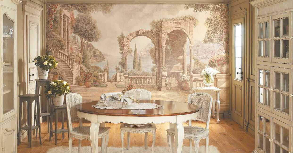 Фотообои в обеденной зоне будут тоже допустимы. Сюжет их должен соответствовать стилю: