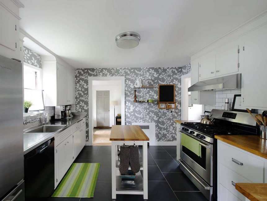Влагоустойчивые обои с моющимся покрытием в интерьере кухни