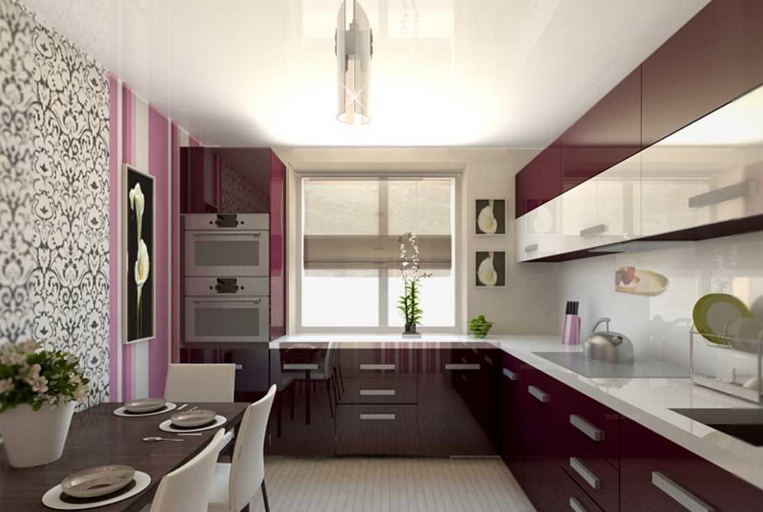 В маленьких кухнях нет места темным обоям. Чем светлее стены, тем шире будет казаться комната. Оттенок обоев в идеале должен принадлежать к холодной палитре – быть синим, голубоватым, нежно-фиолетовым.