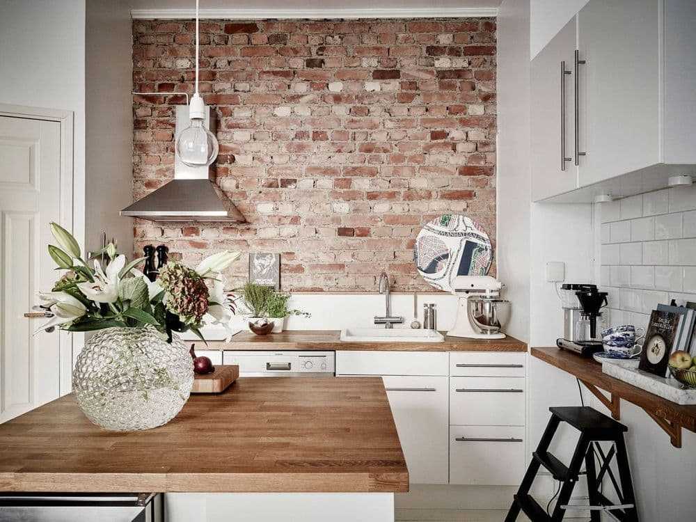 Сегодня очень популярным стало отделывать стены в кухне кирпичной кладкой.