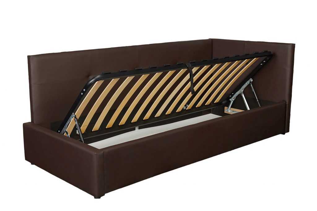 Кроме подножия, может подниматься и любая боковая сторона кровати, если установить немного по-другому подъемный механизм. Боковой подъем нужен в случаях, когда по соображениям оптимальной расстановки, решено поставить постель боком вплотную к стене.