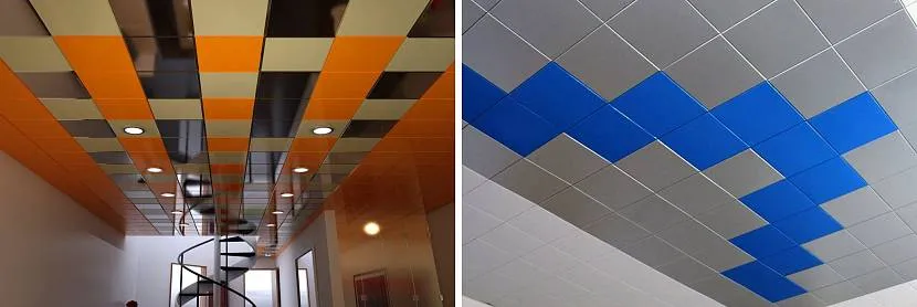 Один из кассетных вариантов, конструируется из модулей. Подходит для помещений любого назначения, способен визуально увеличить пространство и подчеркнуть дизайн. Сам материал имеет защитную пленку, которая предотвращает монтажные деформации. Размеры квадратов могут быть разными, это зависит от площади помещения. Часто такое оформление применяется модульно. Например, для оформления зоны освещения или любого декора.