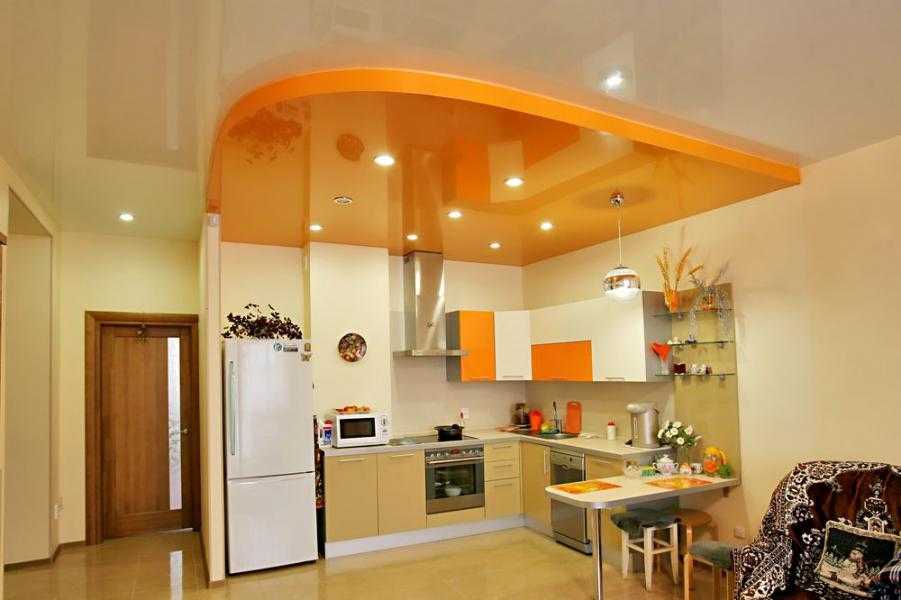 Для коридора, кухни, ванной и даже гостиной подойдет потолок из пленки ПВХ. Он легко моется, при этом чистить его нужно очень редко, так как собирать грязь он не склонен.