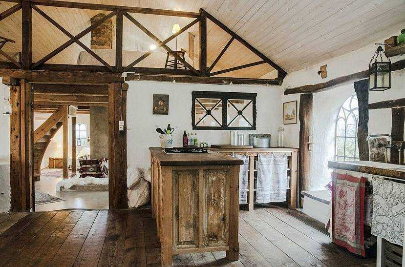 Интерьеры домов и квартир напоминают старину. Дизайнерское направление лучше раскроется в просторных комнатах. При оформлении пространства используют натуральные материалы, поэтому при всей визуальной простоте интерьер очень дорогой.