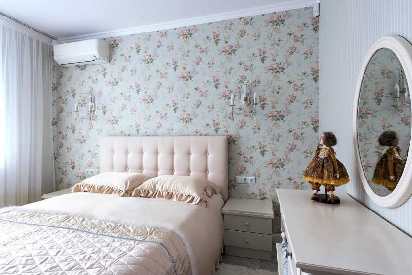 Рационально сделать стены однотонными, чтобы не перегружать интерьер лишними украшениями. Допустим мелкий рисунок. С ним дизайн небольшой спальни становится легким и романтичным.
