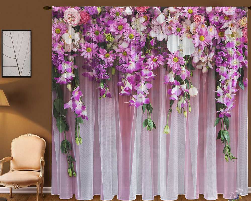 Самые красивые шторы с цветами в интерьере фото из интернета – это украшенные 3Д-картинками. Чаще всего изображаются кремово-белые розы, ярко-красные маки, солнечные одуванчики, голубые незабудки, розово-фиолетовые орхидеи, всевозможных расцветок гладиолусы, пастельных оттенков подснежники и др.