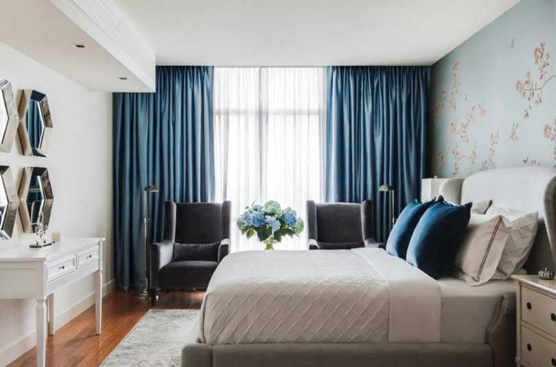 Голубые шторы: плюсы и минусы штор голубого цвета, особенности применения в разных интерьерах. Разнообразие голубых оттенков (фото + видео-обзоры)