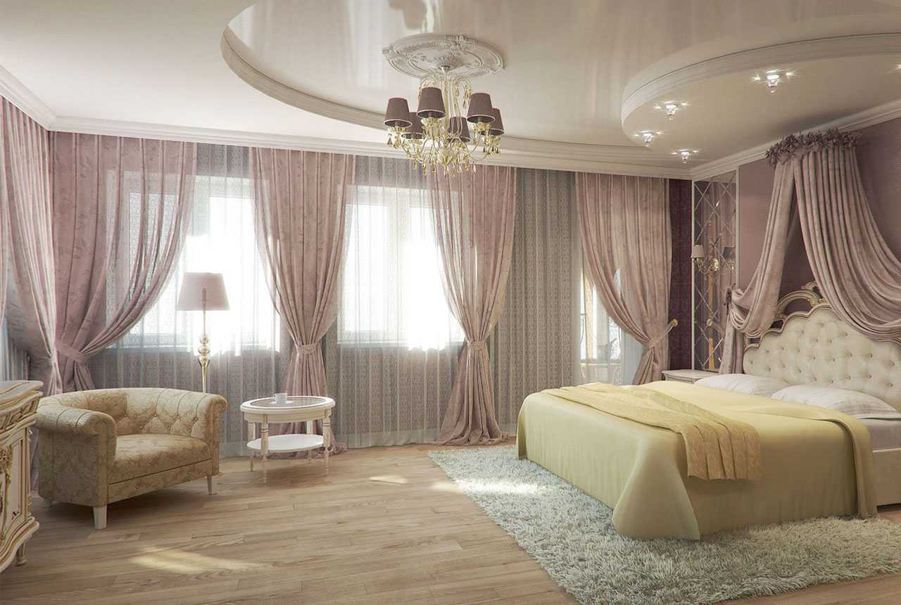 Комната создана для релаксации и отдыха после тяжелого трудового дня. Все здесь должно быть удобным и комфортным. Не стоит использовать яркие цвета для отделки потолка. Подойдут пастельные гаммы, которые будут успокаивать.