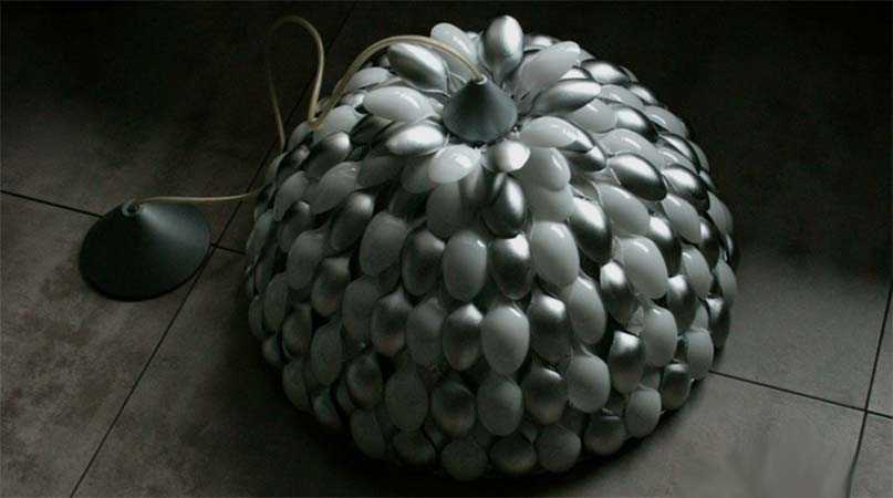 Не спешите выбрасывать старые ложки и вилки — они вам пригодятся для создания оригинального дизайна. Разместив десяток приборов вокруг лампы, вы получите отличный плафон для кухонной люстры, который идеально впишется по тематике.