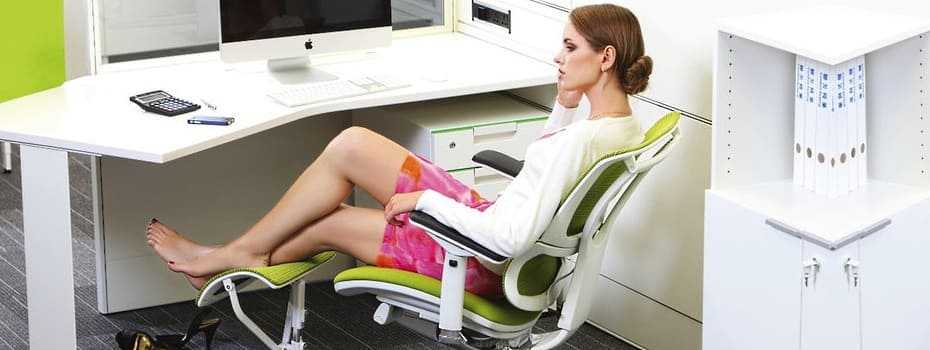 Для офиса, где человек проводит очень много времени за компьютером, необходимо выбирать эргономичное кресло с большим количеством настроек. Должна быть возможность изменять высоту спинки и сиденья, глубину посадочного места, угол наклона и вращения. Также желательна функция фиксации спинки в оптимальном положении. Хорошие модели кресел оснащены амортизаторами (газлифтами) для плавной настройки угла наклона и высоты сиденья.