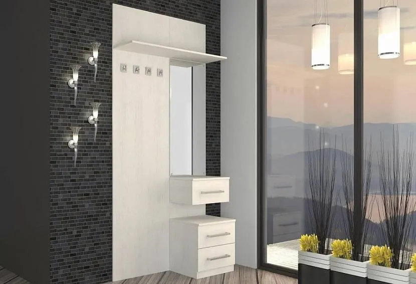 Консоль – столик, у которого зеркало помещается в откидной столешнице и по габаритам не больше ширины столешницы. Под крышкой часто располагаются небольшие ящики для хранения аксессуаров и косметики. В сложенном состоянии используется в качестве письменного, либо столика для ноутбука.