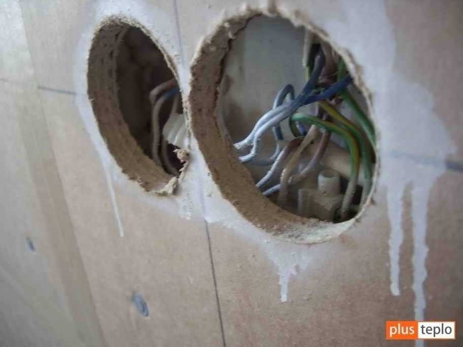 Подрозеточные коробки выносятся на гипсокартон и звукоизолируются негорючим материалом