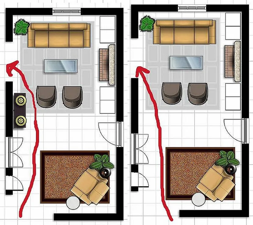 В квартире расстановку мебели в квартиры начинают с составления плана. Параметры пространства можно узнать в технической документации или самостоятельно измерить при помощи рулетки. На чертежной бумаге (миллиметровке) рисуют схему жилья в масштабе с учетом проемов, ниш и коммуникаций.