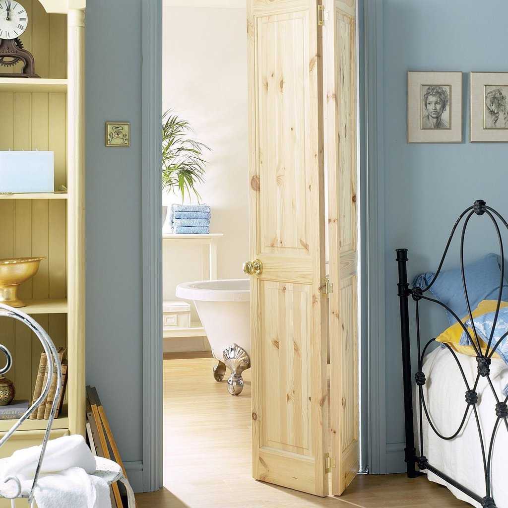 - если створка состоит из 2 элементов, такая дверь-гармошка в интерьере будет выглядеть более массивно, подобные конструкции имеют свое название — книжка;