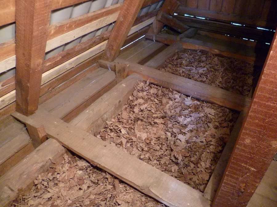 Чтобы снизить вероятность воспламенения, растительные отходы лучше смешать с глиной или посыпают сверху песком. Растительные смеси подвержены гниению, поэтому со временем придется менять старый слой на новый утеплитель.