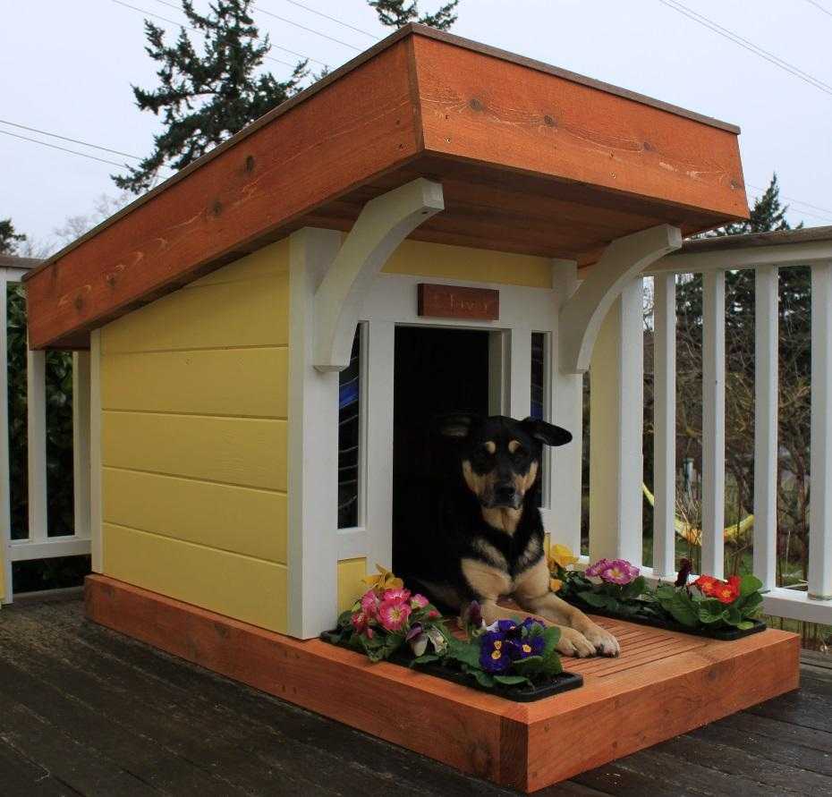В последнее время некоторые владельцы городских коттеджей и загородных дач возводят для своих лохматых охранников двухэтажные будки оригинального дизайна. Такой архитектурный изыск способен лишь украсить территорию двора, не принося практической пользы своему обитателю. Лучший вариант – простая одноэтажная будка прямоугольной формы с односкатной крышей. Конура для собаки не должна содержать лишние элементы: перегородки, ступеньки, выступы, поскольку они будут мешать животному.