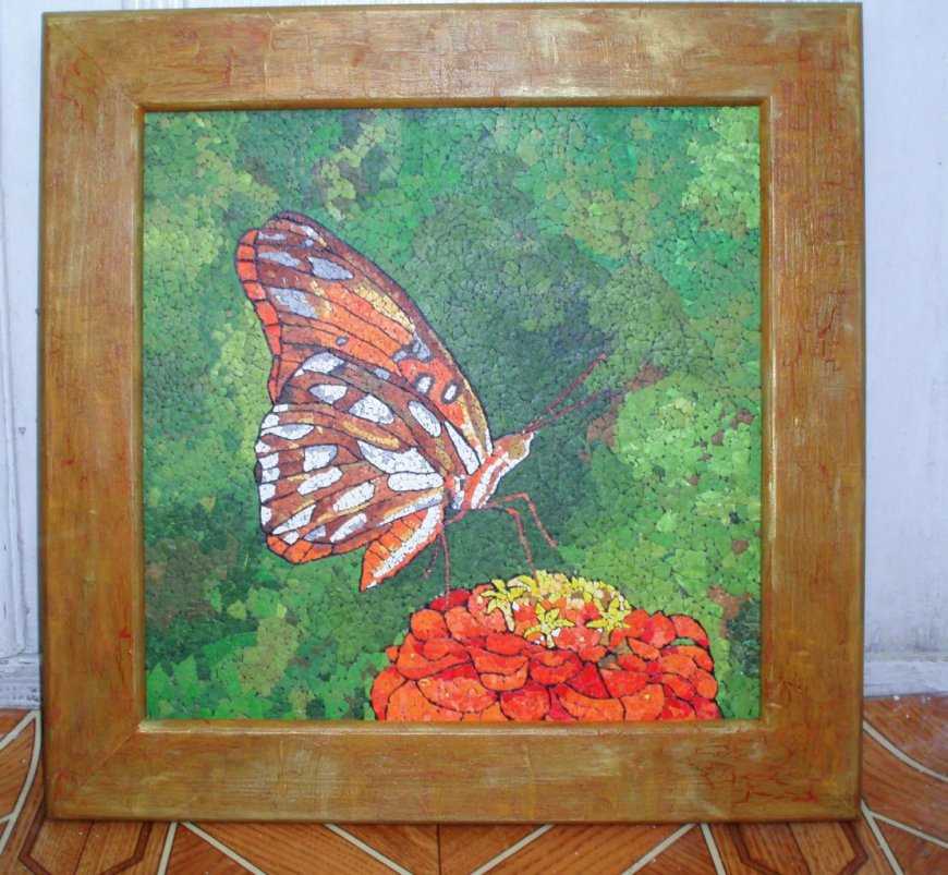 Украшение рамки яичной скорлупой в стиле мозаики