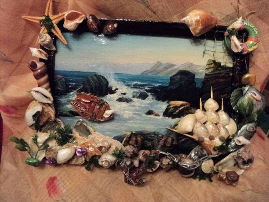 Благодаря разнообразию размеров, форм и расцветок морская галька является оригинальным и универсальным украшением. Для украшения рамки можно выбрать как разные камни, так и элементы одинакового размера, формы или цвета.