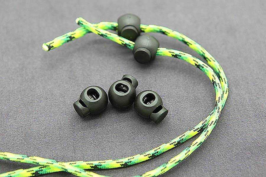 - Надеваем фиксатор на другой конец шнура. Он будет регулировать интенсивность сборки жалюзи, высоту зашторенного пространства. Конец шнура, находящийся ниже фиксатора можно украсить оригинальной висюлькой. Фиксатор можно заменить на обычную пуговицу.