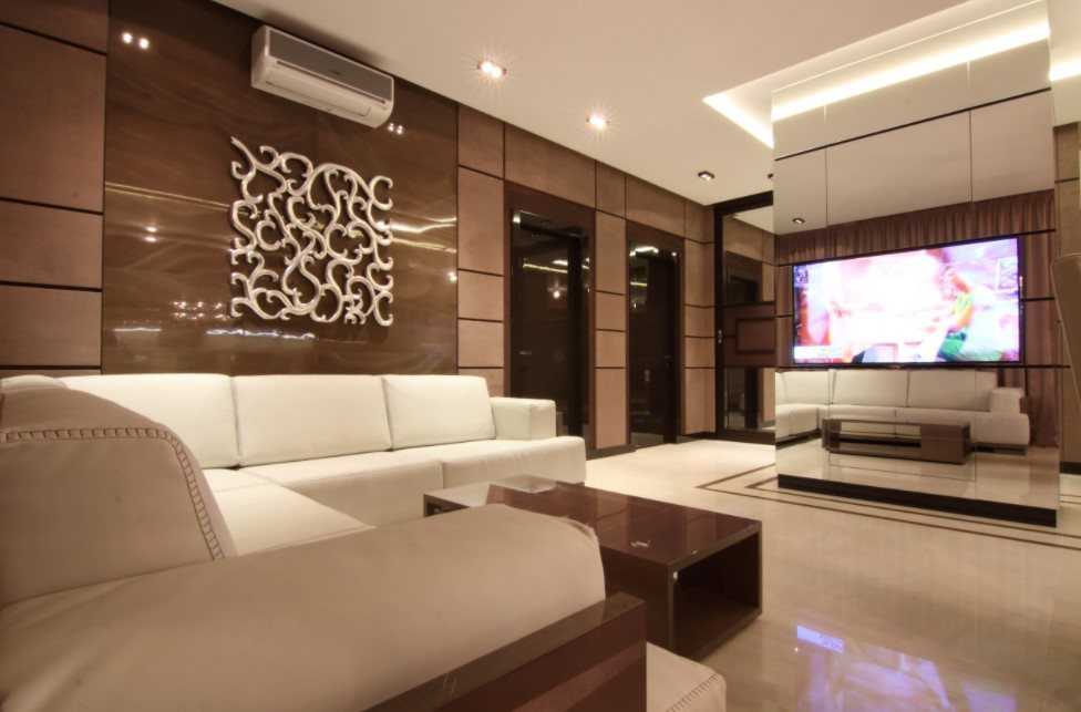 Как вы уже догадались цвет венге достаточно глубокий и выразительный оттенок, поэтому использовать его в оформлении гостиной нужно правильно. Оттенять тёмный венге следует при помощи светлой обстановки, а помимо основного источника освещения использовать настенные бра и дополнительную подсветку в виде точечных светильников.