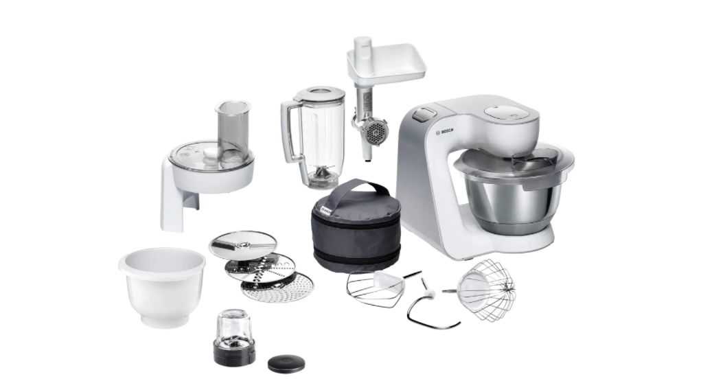 Количество различных насадок и дополнительных предметов комплектации напрямую влияет на функциональность кухонного комбайна.