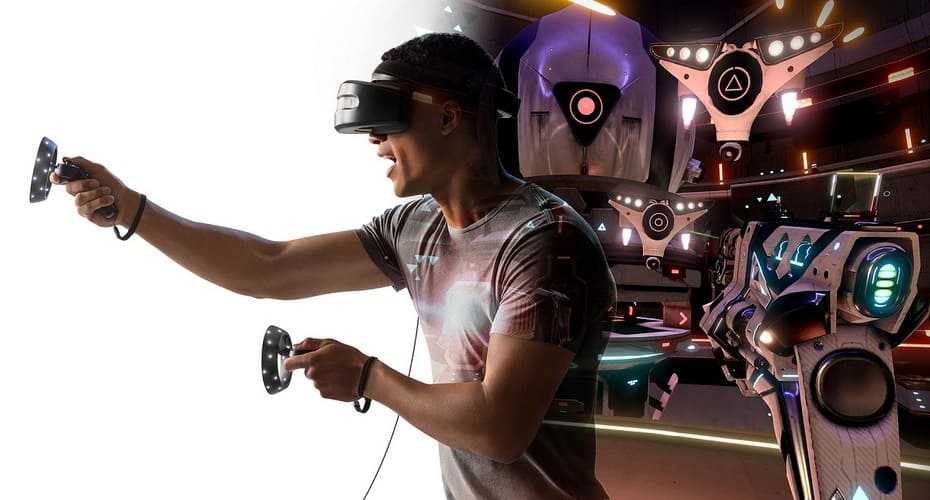 HTC Vive – одни из самых лучших VR-очков на рынке. Производители обеспечивают девайс большим набором комплектующих устройств. Это контроллеры, коннектор, так называемые «базовые станции», наушники и другие, более мелкие детали. Все они предназначены для повышения реалистичности различного рода ощущений. Контроллеры создают эффект ощущения оружия в руках, особенно это ярко проявляется со стрелковым — можно представить себя элитным бойцом и пострелять одновременно из двух пистолетов. Но еще одно интересное свойство контроллеров — создание определенной вибрации, например, при натяжении тетивы лука. При помощи небольших вибромоторчиков это можно ощутить даже физически. Инфракрасные лучи от «базовых станций» помогают определить расположение контроллеров в пространстве.
