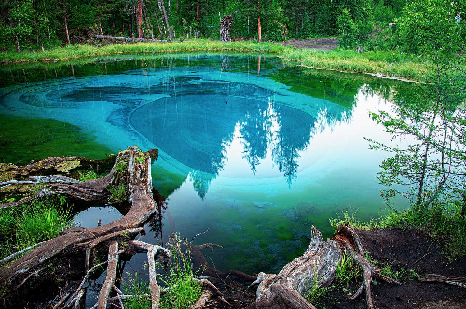 Чтобы влюбиться в Алтай и увидеть лазурные воды, которые становятся доступными к посещению только с конца лета-начала осени. Голубые озёра или Глаза Катуни» скрыты под водами реки Катуни, и только к концу летнего сезона вода спадает и открывается удивительная голубая водная гладь.
