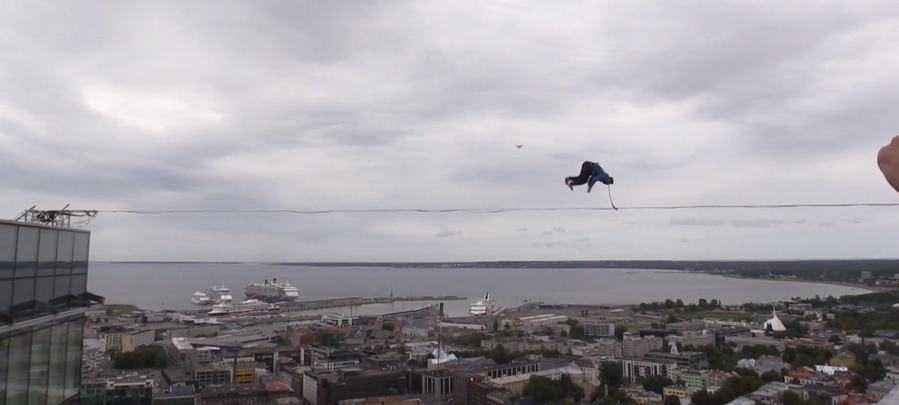 Успешно сделав сальто назад на высоте 117 метров, эстонский стропоходец Яан Роозе навсегда вписал свое имя в историю. В субботу, 25 августа, в Таллинне был побит мировой рекорд — стропоходец Яан Роозе, балансируя на натянутой между двумя высотками стропе, на высоте 117 метров успешно сделал сальто назад, пишет ERR.
