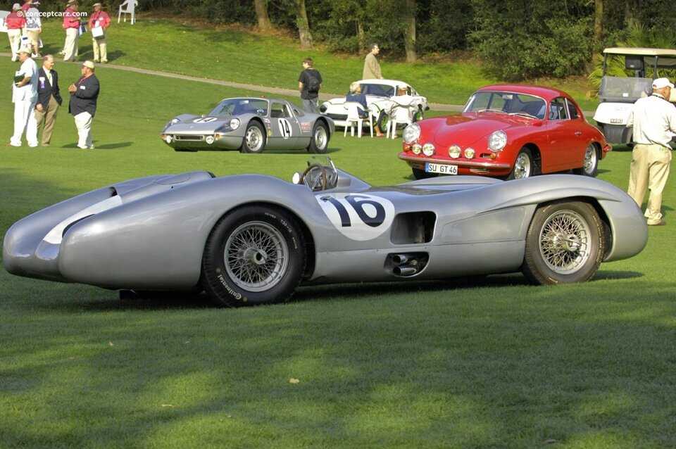 В начале 50-х гг. прошлого века компания Mercedes-Benz в рамках развития бизнеса приняла решение участвовать в чемпионате Формулы-1. Специально созданное шасси с рядным 8-цилиндровым мотором получило независимую торсионную подвеску колес, не имевших защитных щитков. Открытый алюминиевый кузов вмещал только водителя, в отделке салона одного из самого дорогого автомобиля использовался металл и кожа.