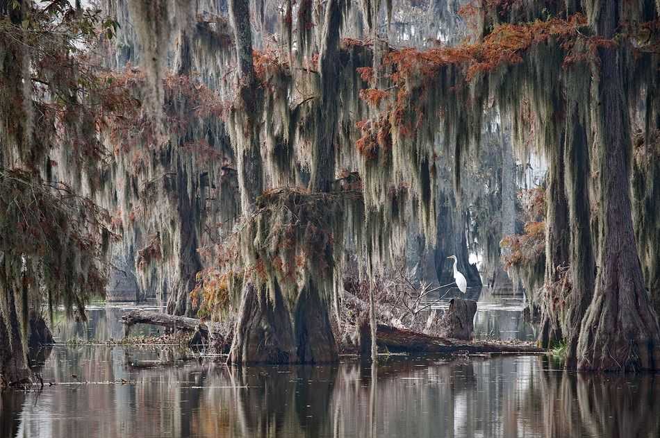 Озеро Каддо, расположенное на границе штатов Техас и Луизиана, занимает площадь 25,400 акров – сплошь лабиринты водных путей, проток, болот, каналов, островов и зарослей кипарисов, поросших бородатым мхом. Это место настолько поросшее, что в нём действительно легко потеряться, а мистическая атмосфера вполне годится для жанра каких-нибудь ужасов.