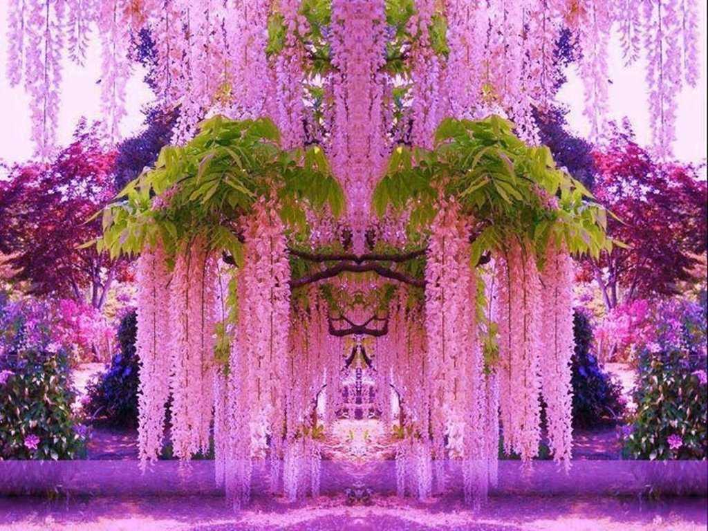 Так, если китайская глициния всевозможными сиреневыми оттенками, то японские представители обладают белыми и розовыми цветами. И именно последние во время цветения образуют наиболее яркие и впечатляющие картины.