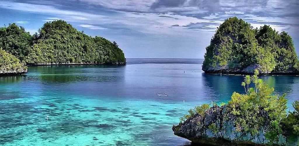 Находится это место в Тихом океане между красивейших островов Индонезии. Уникальность водоема заключается в отсутствии песка на дне – его заменяют вулканические осадки. На островах есть несколько действующих вулканов, которые периодически выпускают пар.