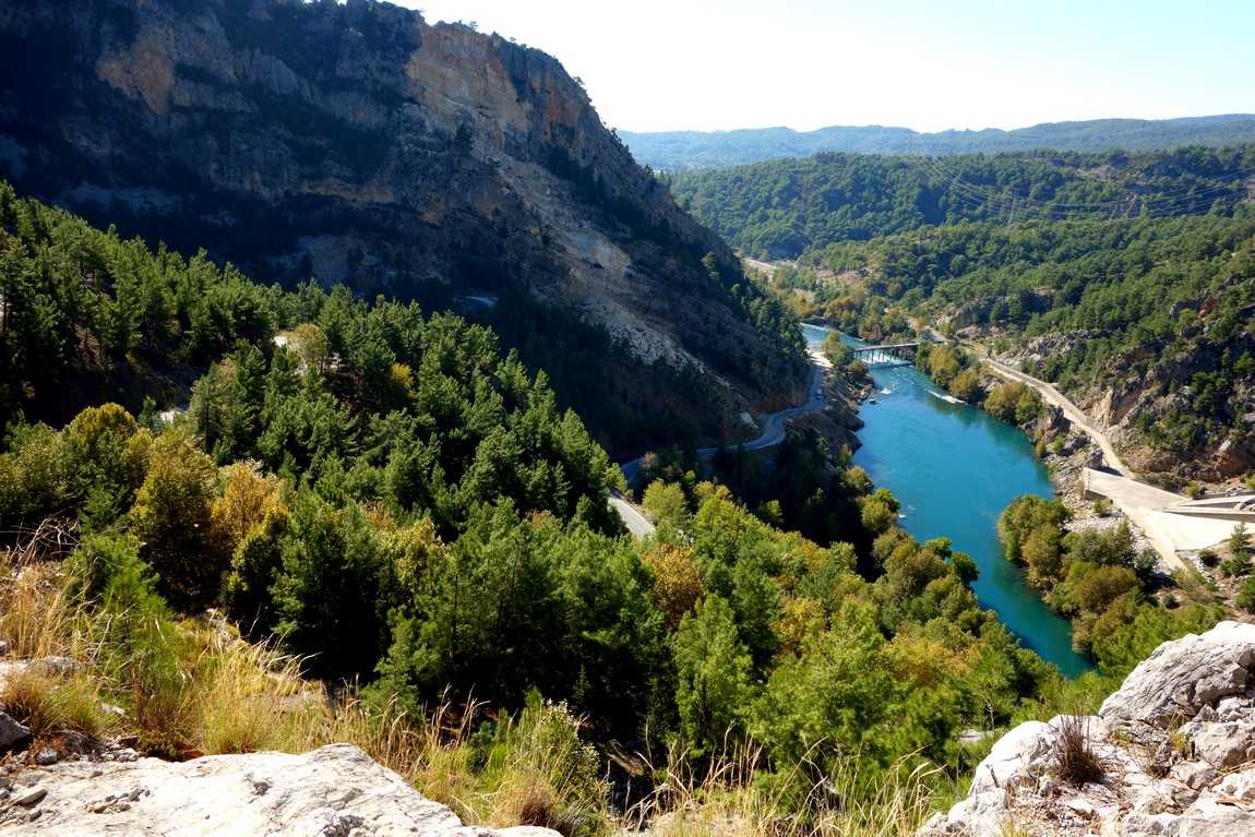 Теперь едем далее до Манавгадского водохранилища, которое располагается в горах Тавры (Турции), на высоте 350 метров над уровнем моря. Едем опять горными дорогами и серпантином по склонам гор. Подъехали к реке Манавгад.