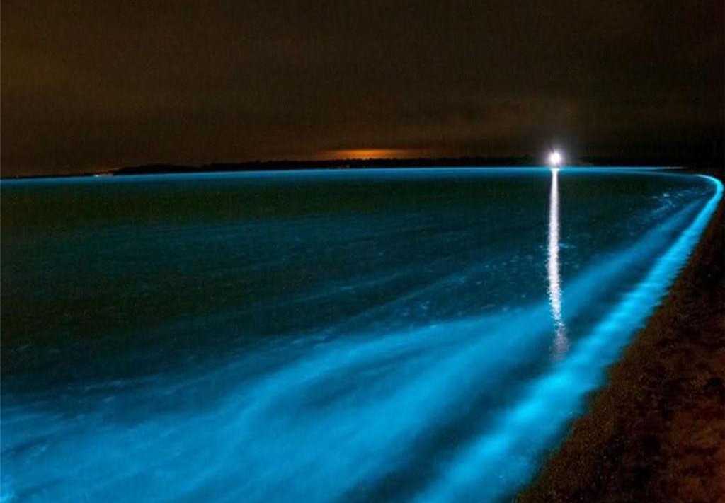 В Австралии находятся популярные среди туристов Гипслендские озера. Здесь расположен национальный парк Кроаджинголонг с гигантскими эвкалиптами, белыми песчаными пляжами. Однако в 2011 году на одном из озер было запечатлено явление, сделавшее его особо популярным. Туристическая группа, отдыхающая на озерах не в первый раз, заметила, что воды озера светятся синим неоновым светом. Примеров естественной биолюминисценции в мире очень мало и в основном это происходит на океанских глубинах, куда не проникает солнечный свет. В данном случае, причиной свечения стал редкий вид водорослей, разросшихся в озере за несколько лет. Noctiluca scintillans (Ночесветки) не видны для человеческого глаза, а исходящий от них свет — да.