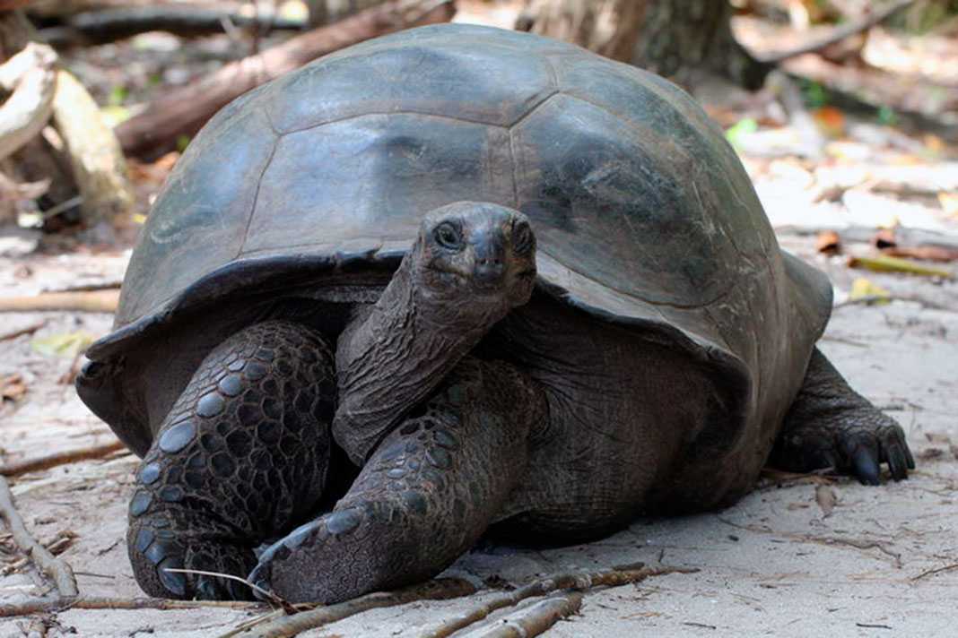Гигантская черепаха с островов Альдабра в Индийском океане принадлежащих Сейшельским островам. Является одним из самых крупных видов черепах в мире. Исторически, гигантские черепахи водились на многих островах западной части Индийского океана, а также на Мадагаскаре. Найденные ископаемые объекты указывают на то, что гигантские черепахи когда-то встречались на всех континентах и на многих островах, за исключением Австралии и Антарктиды. В настоящее время – редкие животные.