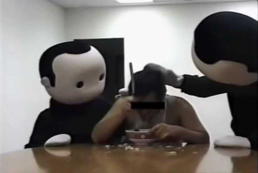 В 2006 году Рэймонд Перси, художник-мультипликатор, работавший над “Зверополис” и “Холодное сердце”, получил по сети от анонима видео, которое загрузил в сеть. На нем мужчина в фартуке на голое тело что-то ест половником из миски. К нему подходит ростовая кукла (персонажа созданного Рэймондом Перси) и начинает гладить его по плечам и голове, как бы жалея. Мужчина продолжает есть очевидно через силу. Появляется вторая кукла и у мужчины начинается практически истерика.