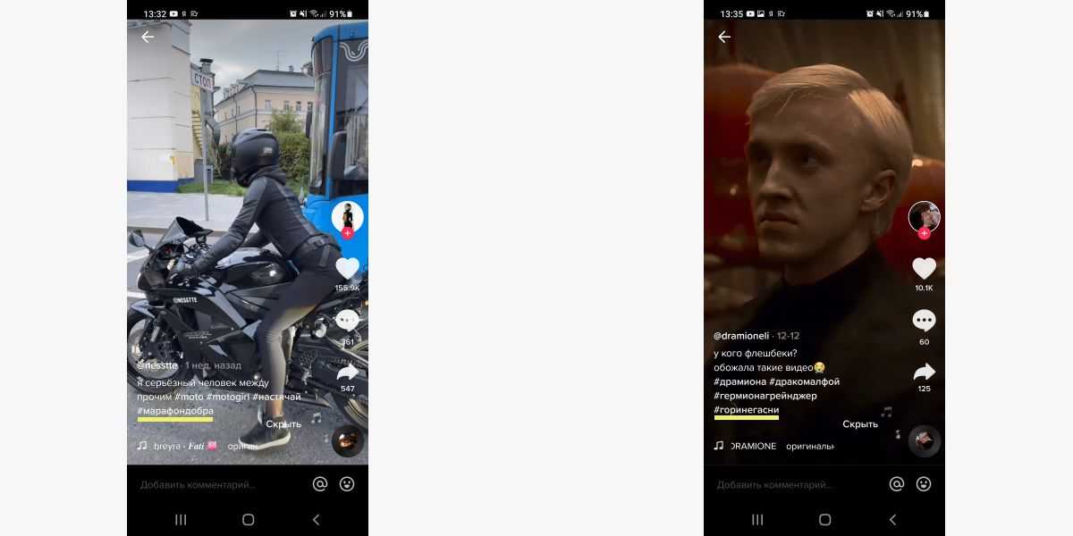 Алгоритмы ТикТока работают так, что трендовые ролики будут показываться чаще, если использовать популярные хештеги.