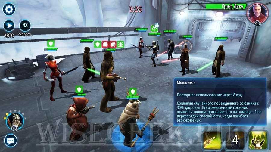 При прохождение битв расходуется энергия. Она бесплатно прибавляется по 1 единице каждые 6 минут, либо за кристаллы. Также в ежедневных заданиях Вы можете получать по 45 единиц энергии несколько раз в день (следите за таймером). Максимальное количество ограничено и зависит от общего уровня игрока. Если энергии больше или равно максимального уровня — прибавка каждые 6 минут останавливается. Поэтому следует её вовремя тратить. Чем дальше Вы пройдете в битвах тем больше у Вас будет взиматься этой энергии. Сложные битвы требуют в 2 раза больше энергии чем битвы на нормальном уровне сложности. В игре всего 381 битва на светлой стороне и 381 битва на тёмной.