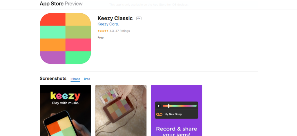 Keezy – это мобильное приложение для iOS, которое поможет вам немного развлечься с друзьями или детьми. Это своеобразная музыкальная игра, пользовательский интерфейс в которой до безобразия простой. Эта простота и работает на приложение, ведь вы не отвлекаетесь на массу ненужных элементов на экране, а просто играете и веселитесь