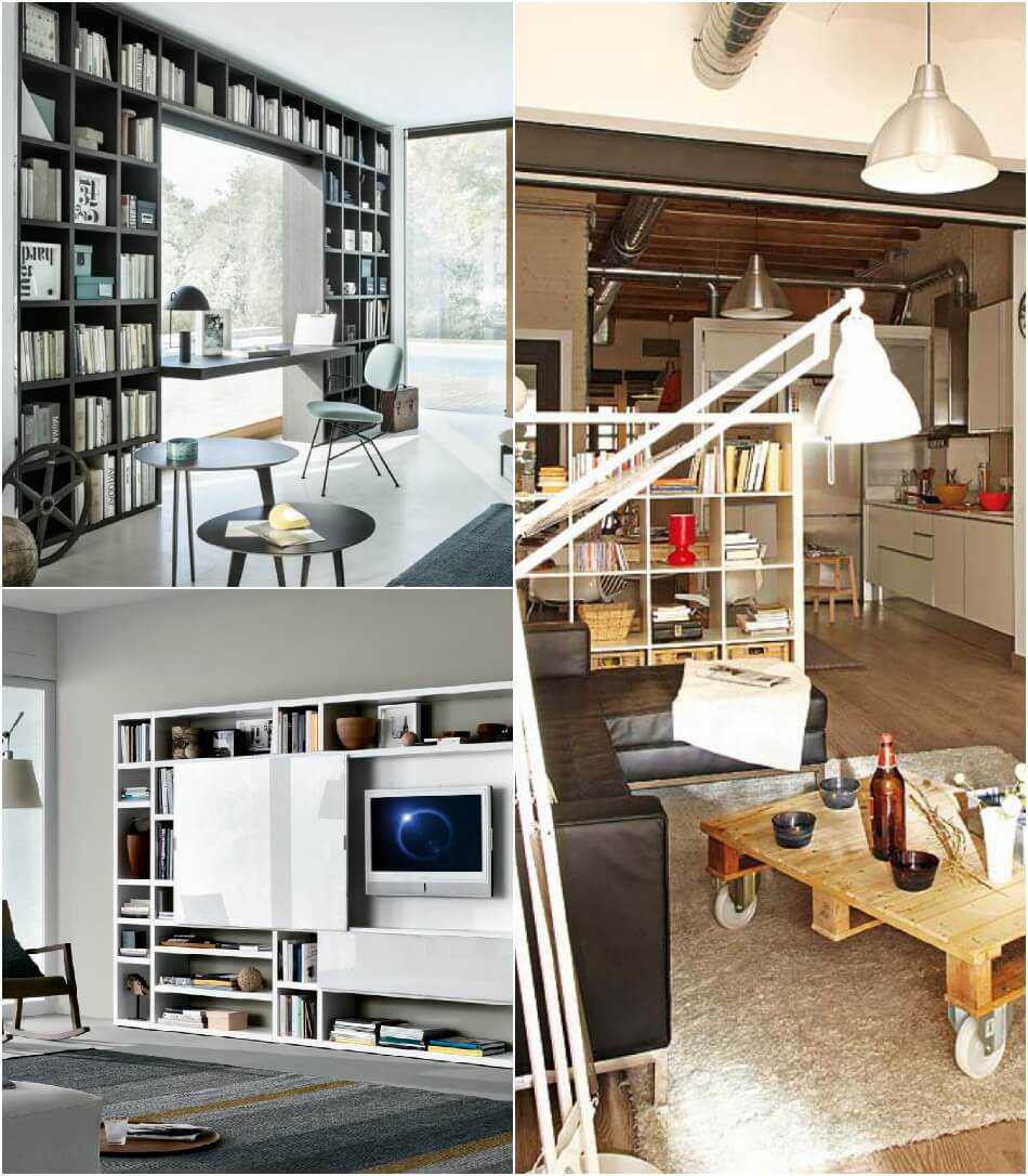 Организация специальных стеллажей – самый удачный вариант того, где хранить вещи в гостиной комнате. Эти стеллажи можно прикрепить вплотную к стене, или использовать их в качестве перегородки для зонирования гостиной комнаты. Чтобы они идеально вписались в дизайн гостиной, следует устанавливать на полки стеллажей не только функциональные вещи, но также декоративные предметы, подчеркивающие стиль помещения. Например, это могут быть книги, красивые вазы и элегантные статуэтки, которые будут перемежаться с коробками для хранения мелких вещиц. Еще один вариант, где хранить вещи – ящики в креслах-трансформерах или в диванах. Также с этой целью пригодятся подставки для ног, представляющие собой пустую коробку с крышкой. Еще один удачный вариант – журнальный столик с ящичками.