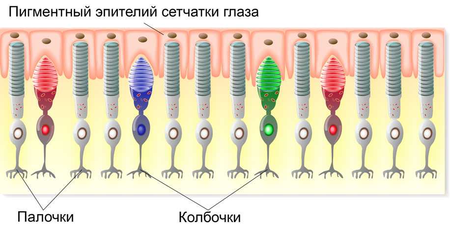 Цветоощущение — это одна из функций зрения, благодаря которой человек воспринимает мир во всем разнообразии цветов и оттенков. За формирование изображения отвечают преломляющая система глаза и сетчатка, на которой собираются световые лучи после преломления их хрусталиком и роговицей. За цвет картинки отвечает центральная точка сетчатой оболочки — макула, а точнее — колбочки. Эти фоторецепторы обеспечивают цветное зрение и участвуют в фотопическом (дневном) зрении.