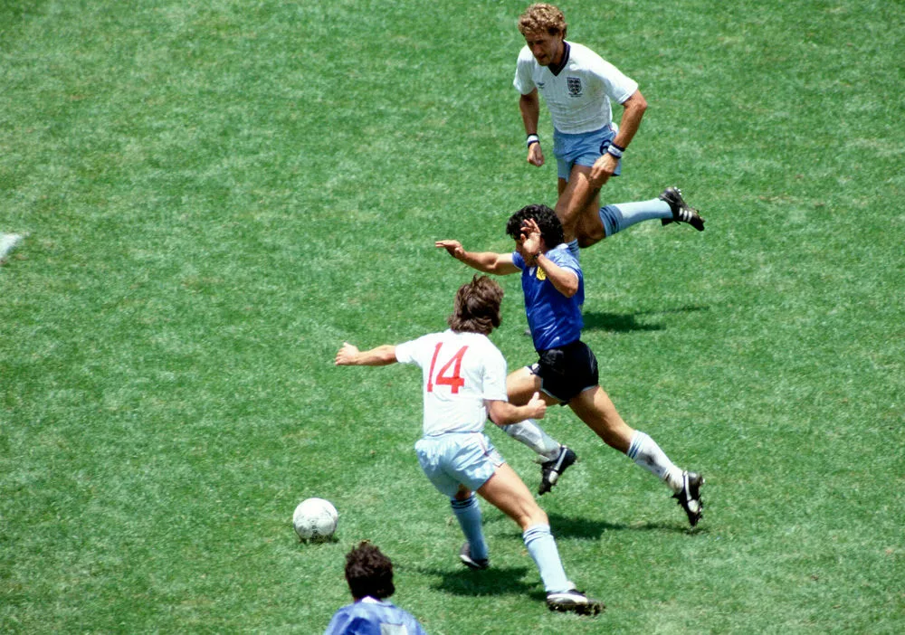 Величайший индивидуальный гол за все время, забитый перед 114 000 болельщиков на бедной неровной поверхности стадиона «Ацтека» во время четвертьфинала Кубка мира.